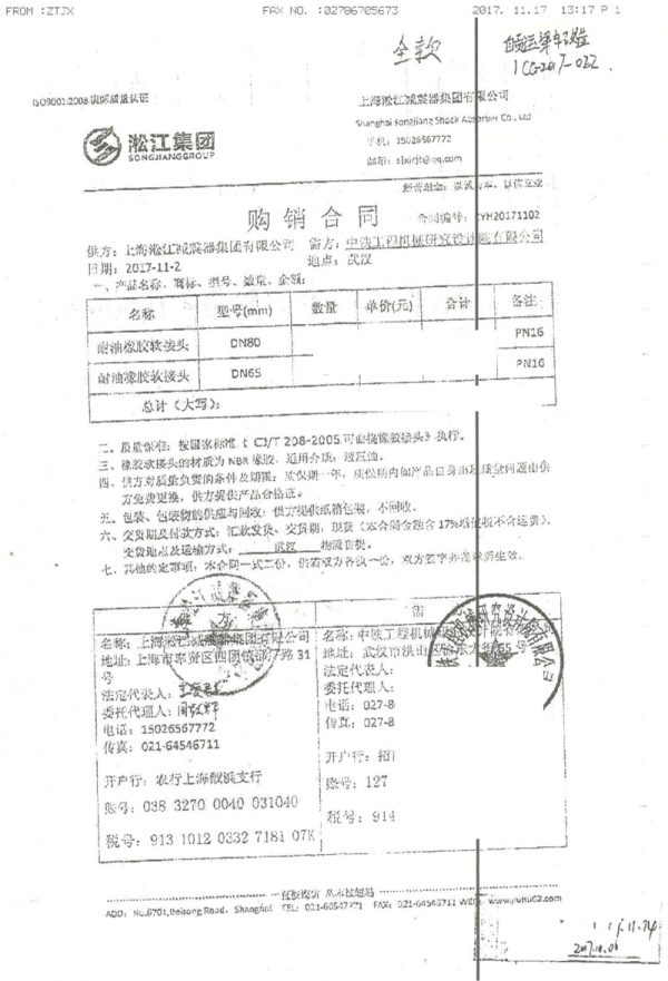 上海淞江減震器集團有限公司為您介紹:中鐵工程機械研究院橡膠管接頭合同項目信息,淞江集團為眾多工程項目配套耐油橡膠接頭產品,主要起到減震和降噪的作用,以下是【中鐵工程機械研究院】橡膠接頭合同詳細介紹。
