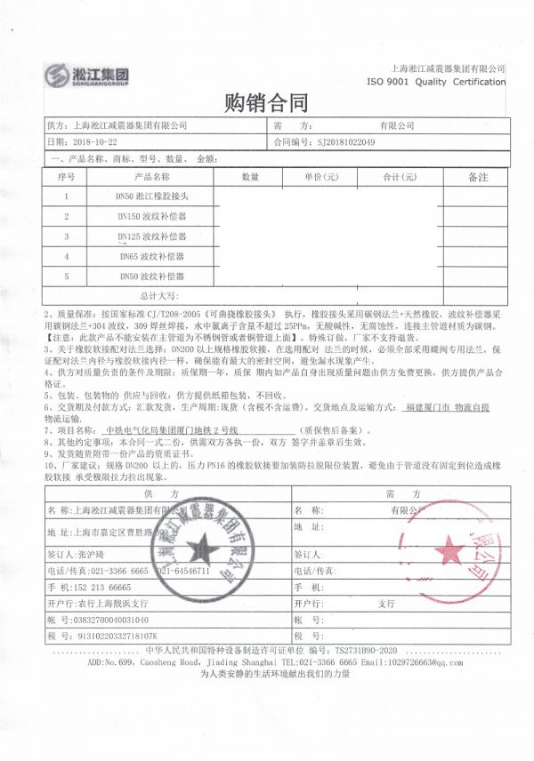 上海淞江減震器集團有限公司為您介紹:廈門地鐵2號線橡膠柔性接頭合同項目信息,淞江集團為廈門多條地鐵線路暖通系統提供減震器產品,以下是為2號線提供的橡膠接頭合同介紹。