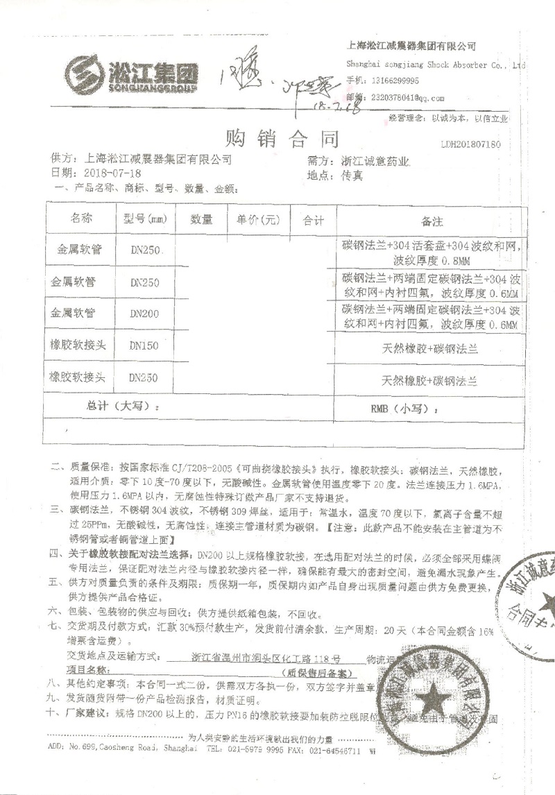 上海淞江減震器集團(tuán)有限公司為您介紹:浙江誠(chéng)意藥業(yè)四氟金屬軟管合同案例信息,淞江集團(tuán)銷(xiāo)售在2018年7月20日簽下該合同,為浙江誠(chéng)意藥業(yè)提供四氟金屬軟管產(chǎn)品。淞江集團(tuán)為眾多藥業(yè)工廠提供衛(wèi)生級(jí)金屬軟管產(chǎn)品,起到減震、降噪的作用,全部采用衛(wèi)生級(jí)材料生產(chǎn)。